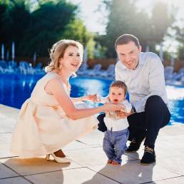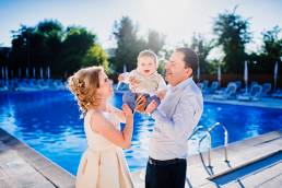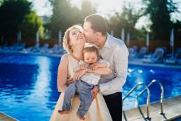 Undeva aproape de apusul soarelui am profitat de zona de piscina, care era libera și am făcut o ședința foto de familie cu cei trei. Ne-am distrat pe cinste și au și ieșit o serie de fotografii super faine.